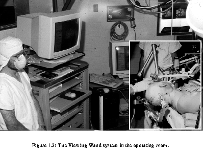 The preparation of a typical procedure involves the following steps. First, a three-dimensional MR or CT volume must be acquired. In some cases, extrinsic fiducial markers are desired to increase the number of visible landmarks, and they must be placed on the patient's head prior to scanning. The next stage involves the transfer of data from the scanner to the Allegro workstation. Then, segmentation of the skin, brain, lesion and other relevant internal structures is performed. This is largely a manual procedure and can take from 20 minutes to two hours, depending on the number and complexity of structures to be segmented and on the number of slices in the data set. The resulting contour data are then processed to form 3-D reconstructions of the surface of the segmented structures. The original acquisition data along with reconstructed three-dimensional objects are then transferred to a second workstation in the operating room.